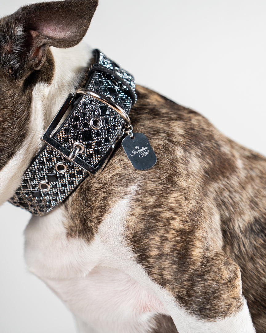Luxury Black Diamond Print Dog Collar – Silver Hardware | Soft Vegan Leather, Adjustable Sizes