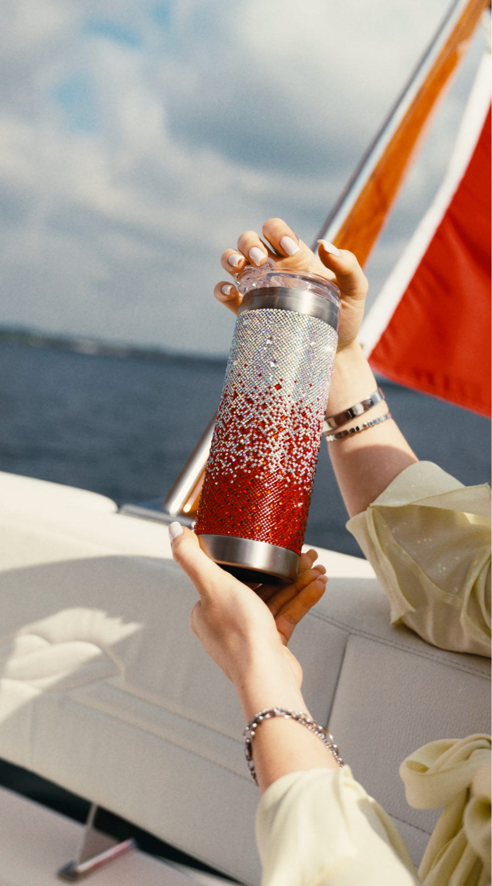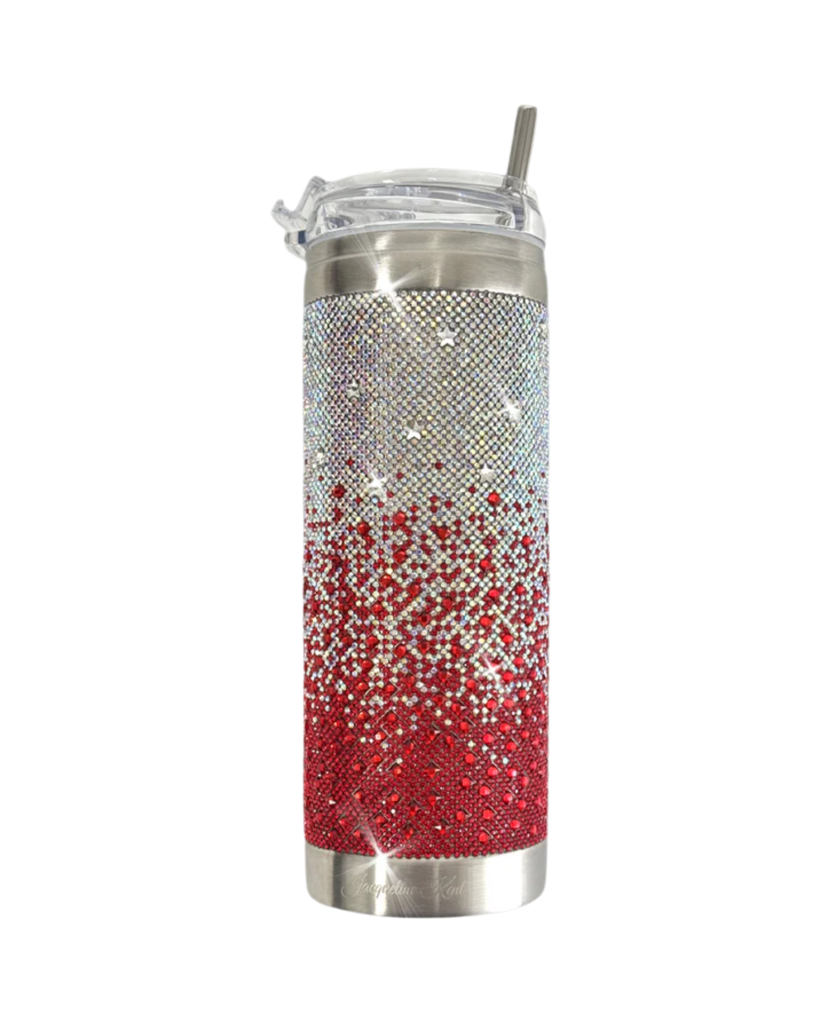 Crystal-Embellished 20oz Stainless Steel Tumbler – Red Ombre