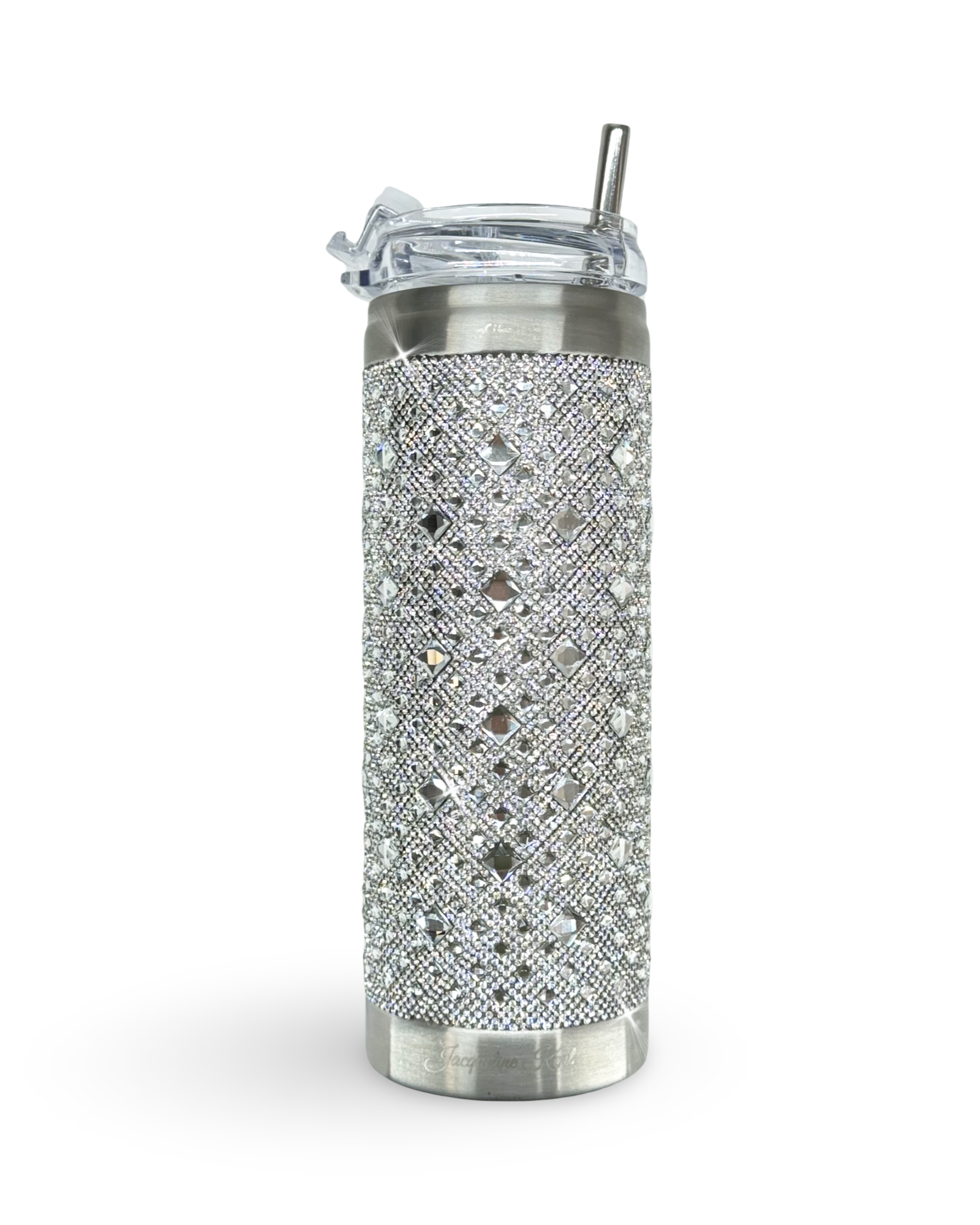 Crystal-Embellished 20oz Stainless Steel Tumbler – Silver Diamond